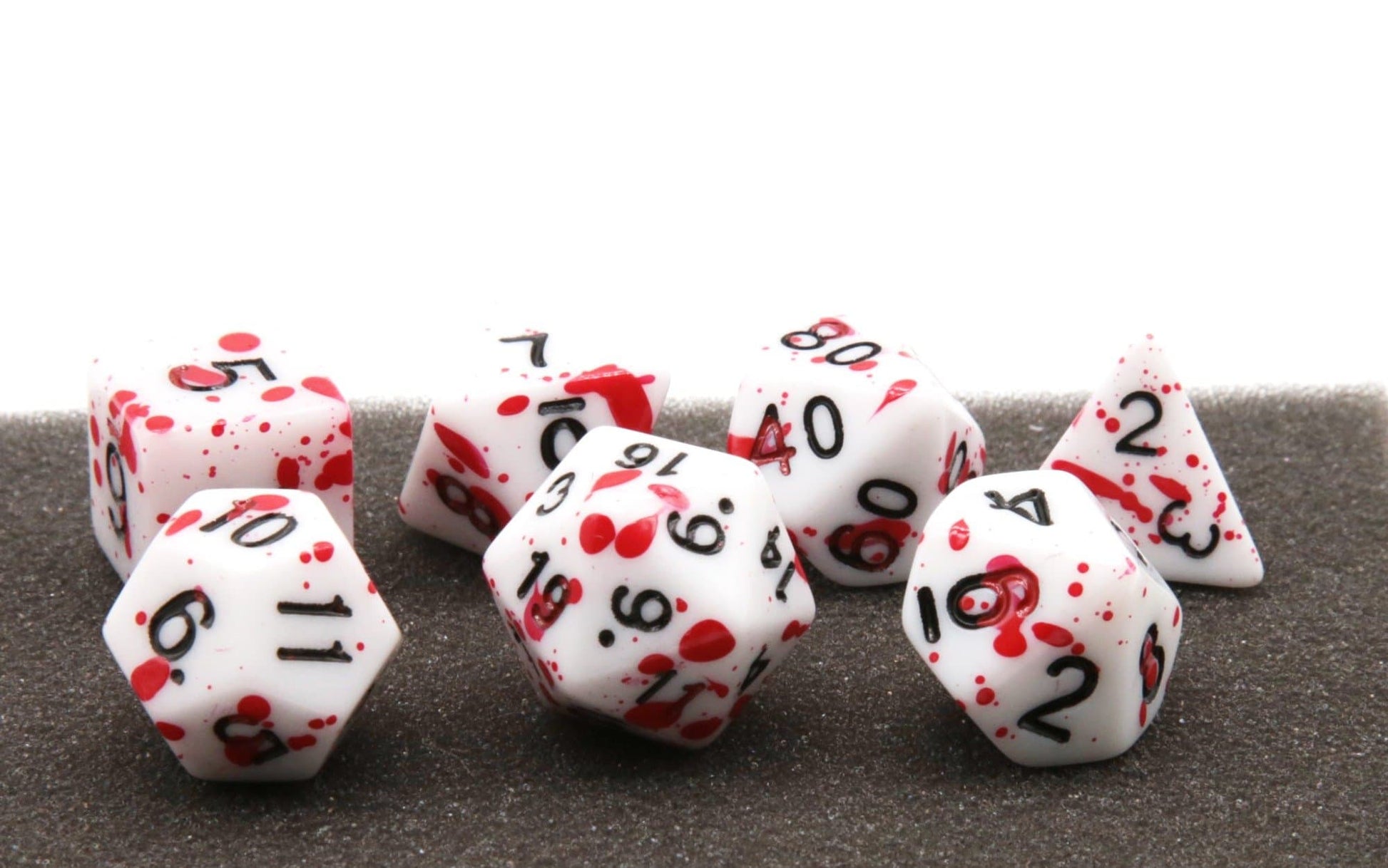 RPG Dice | "Blood Splatter" (Dark) | Set of 7