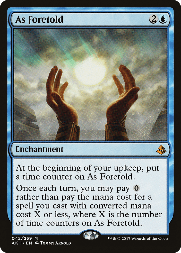 At the beginning of your upkeep, put a time counter on As Foretold.