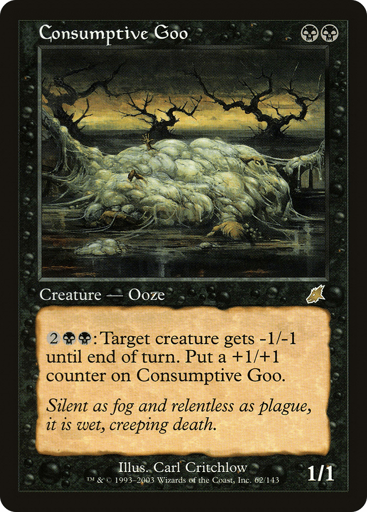 {2}{B}{B}: Target creature gets -1/-1 until end of turn. Put a +1/+1 counter on Consumptive Goo.