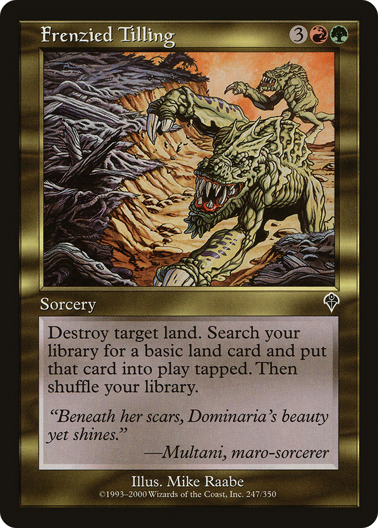 Destroy target land. Search your library for a basic land card, put that card onto the battlefield tapped, then shuffle.