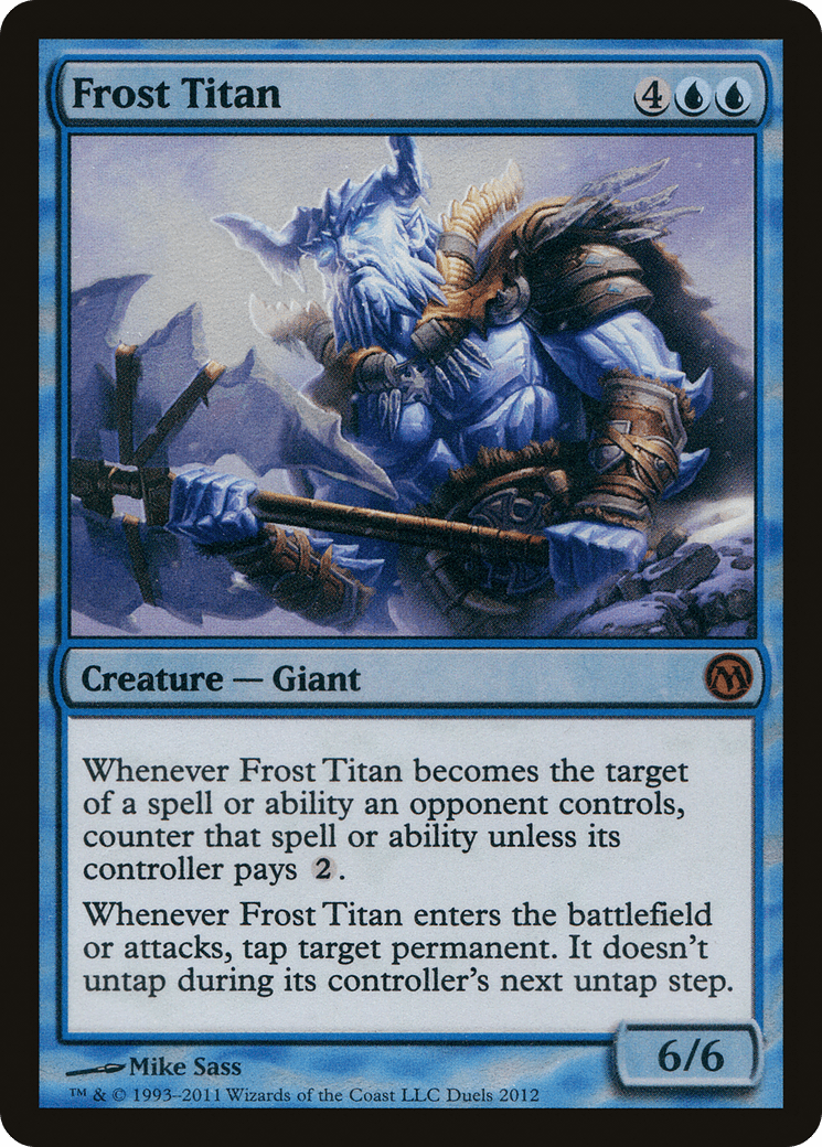 Whenever Frost Titan enters the battlefield or attacks, tap target permanent. It doesn't untap during its controller's next untap step.