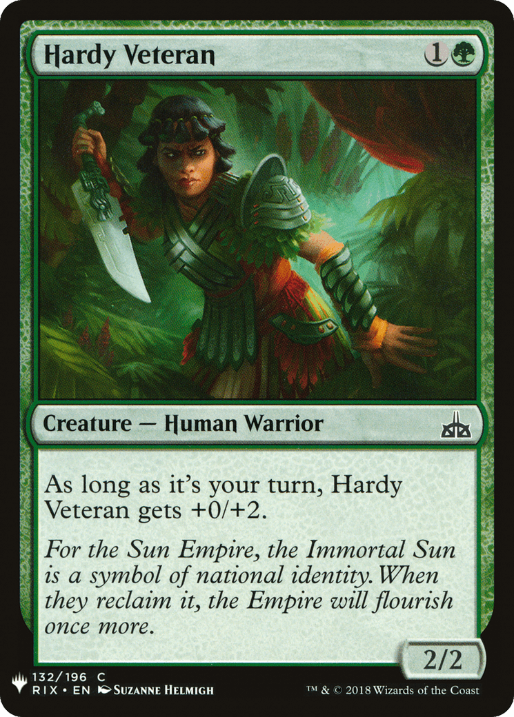 As long as it's your turn, Hardy Veteran gets +0/+2.