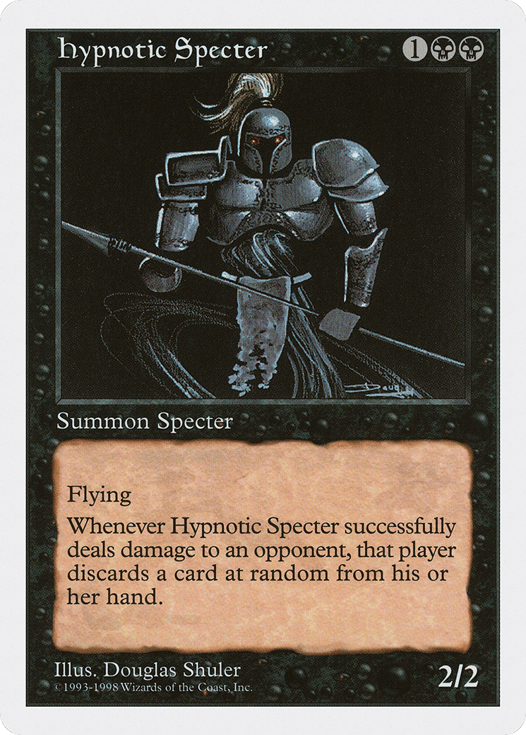 Whenever Hypnotic Specter deals damage to an opponent, that player discards a card at random.