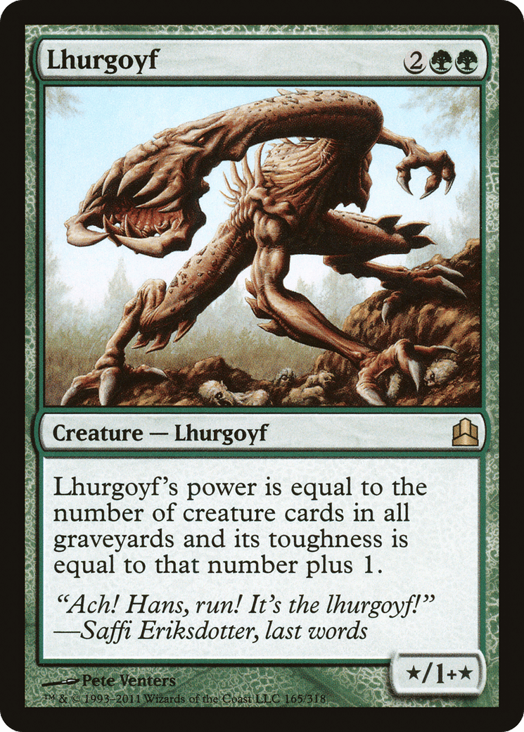 Lhurgoyf's power is equal to the number of creature cards in all graveyards and its toughness is equal to that number plus 1.