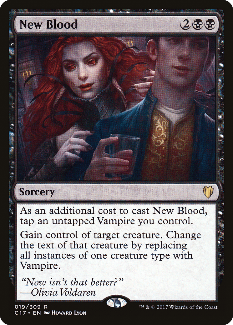 Gain control of target creature. Change the text of that creature by replacing all instances of one creature type with Vampire.