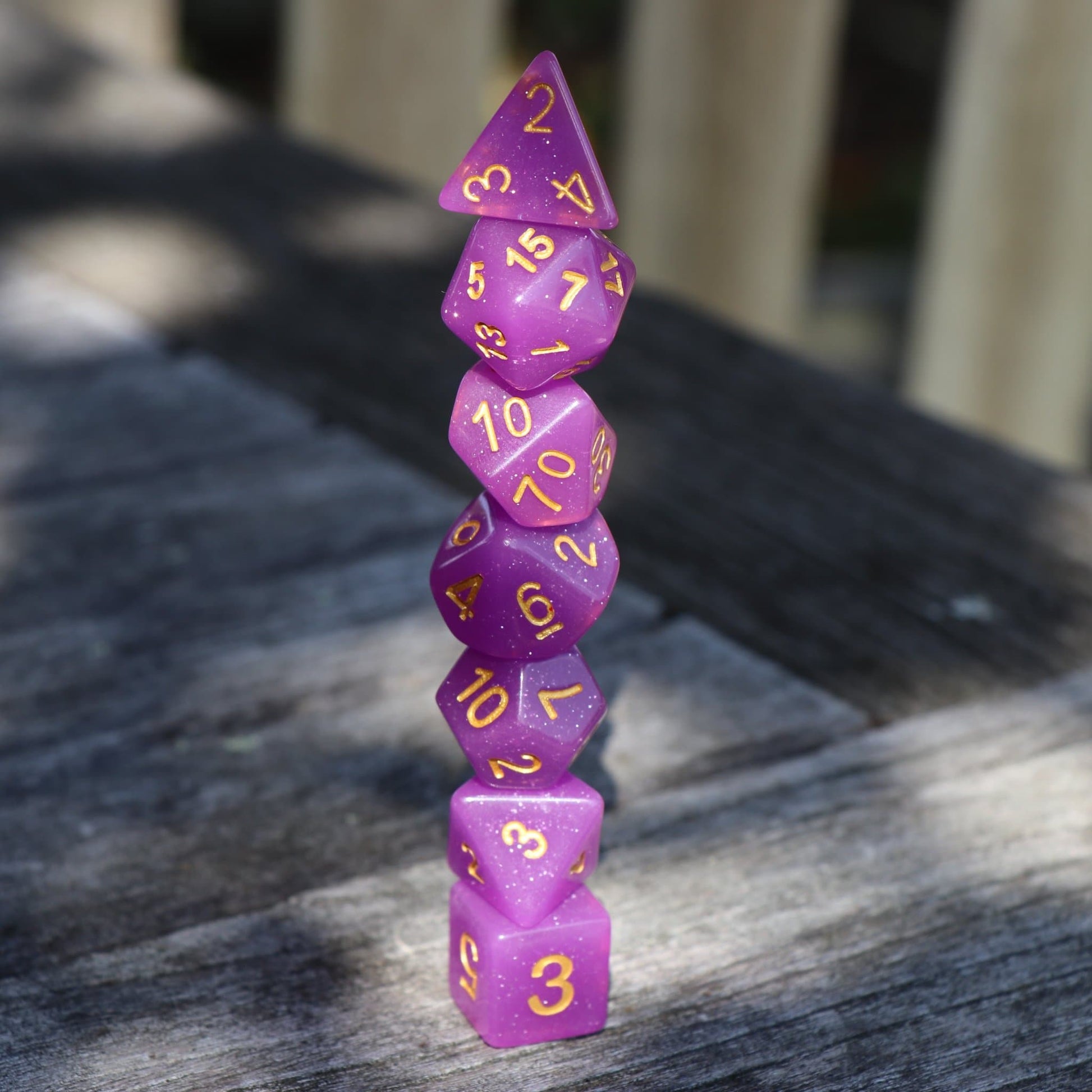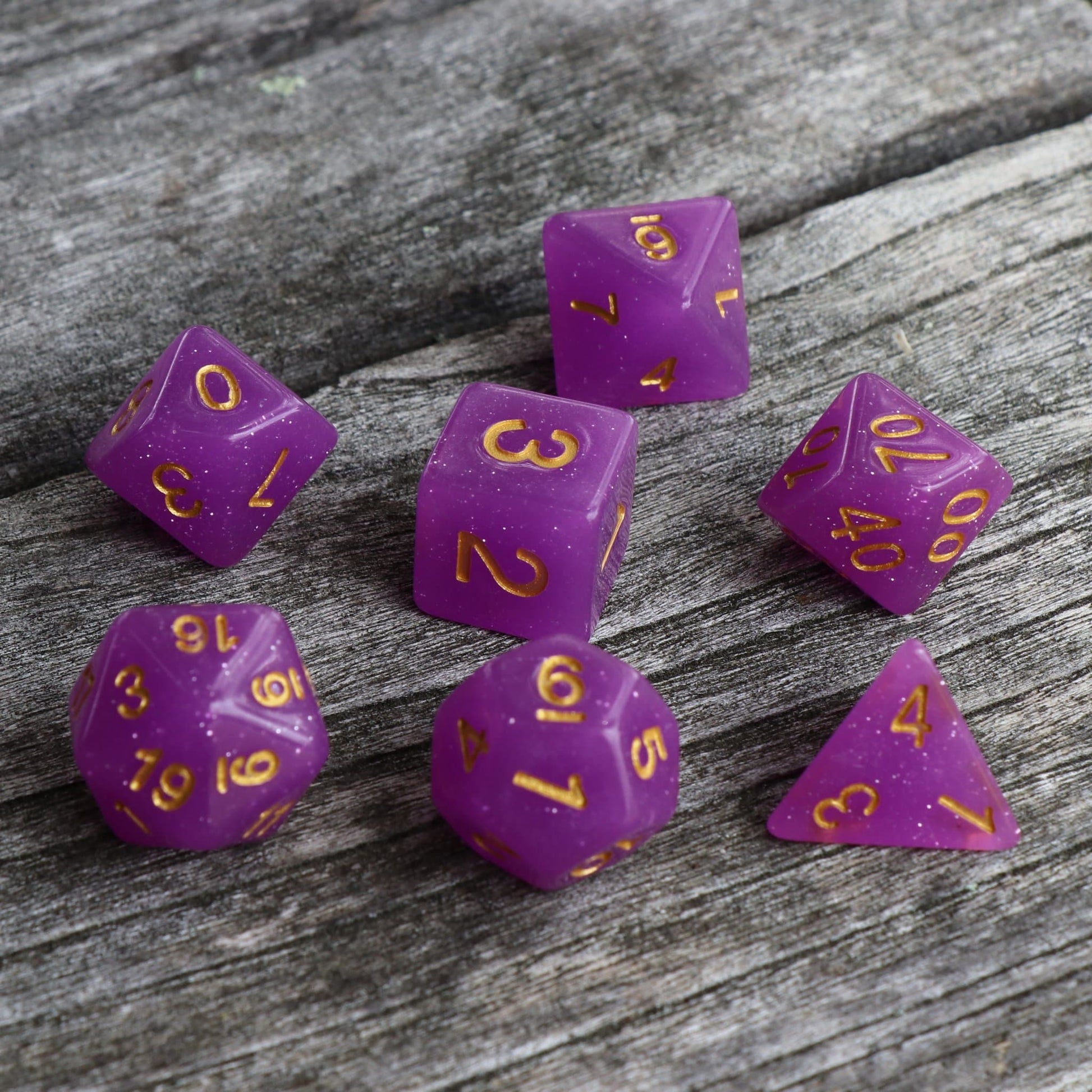 Polyhedral Dice Set | Acrylic | Translucent Purple Glitter | Set of 7 (D0071)
