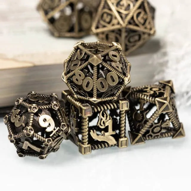 RPG Dice Set | Hollow Metal | "Character Class" - Bronze | Set of 7 (D0233)