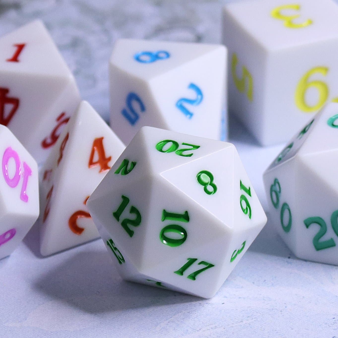 This bright, colourful 7-piece RPG dice set makes a great addition to any dice goblin's hoard.