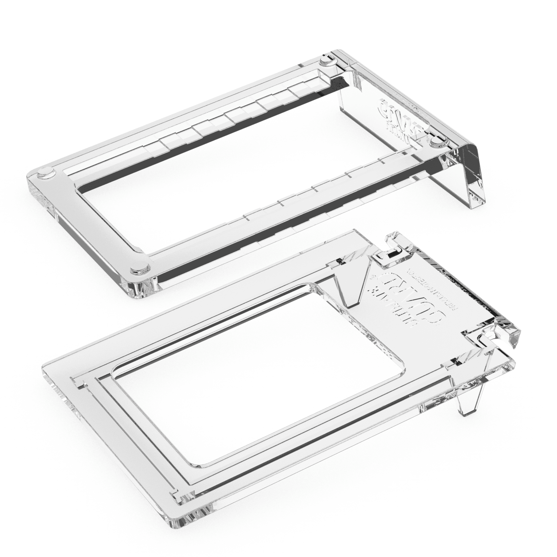 Our Slider Stands help you present the most precious pieces of your collection in an appealing way. They consist of two sturdy crystal-clear pieces to slide flexibly into various positions, making them universally compatible. Optimized to hold the Ultimate Guard Magnetic Card Cases in numerous sizes, they are almost invisible and grant an eye-catching display solution for your cards and cases.