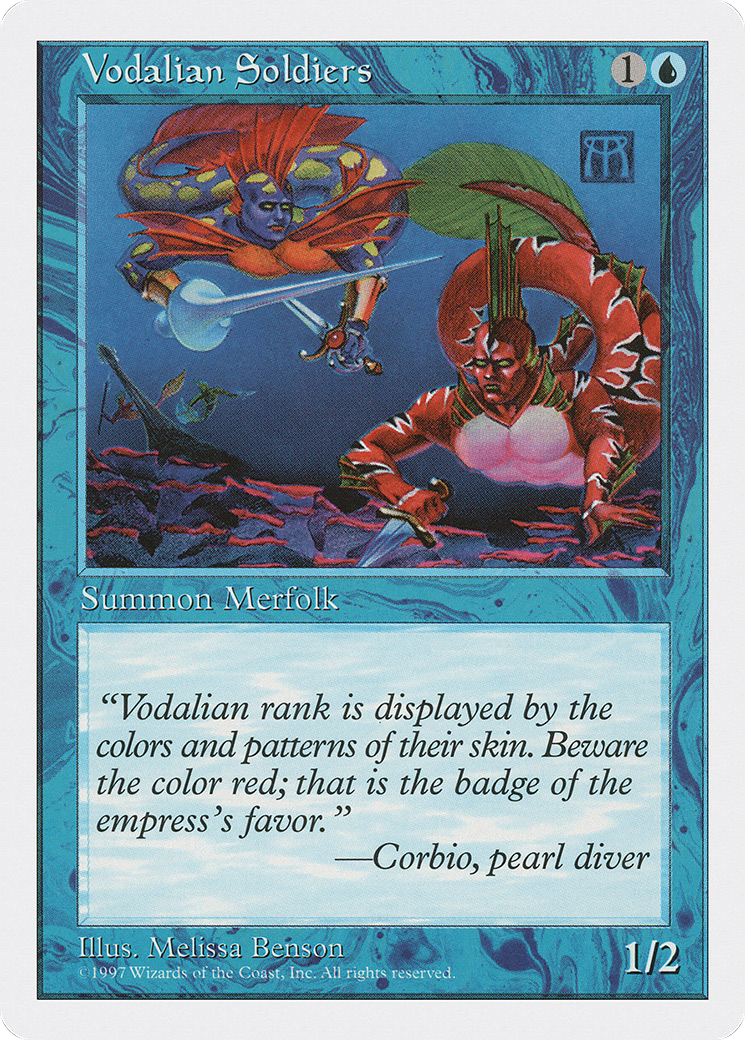"Vodalian rank is displayed by the colors and patterns of their skin. Beware the color red; that is the badge of the empress's favor."