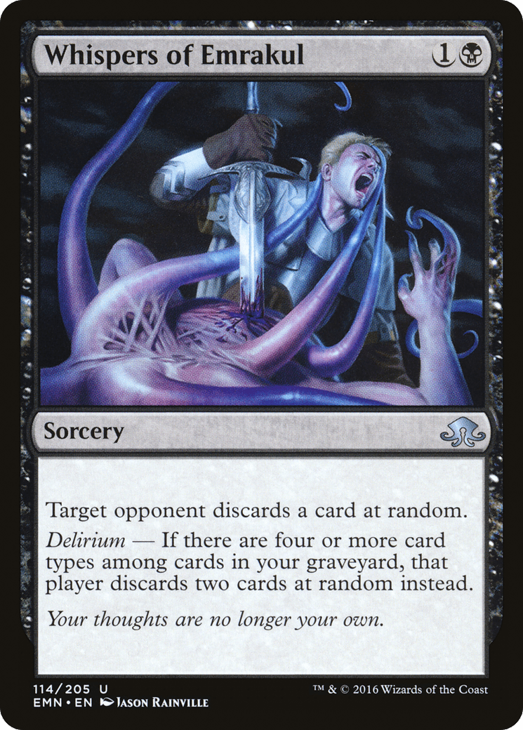 Delirium — If there are four or more card types among cards in your graveyard, that player discards two cards at random instead.