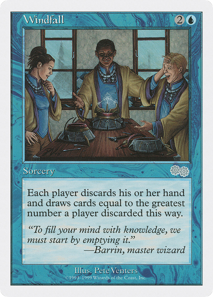 Each player discards their hand, then draws cards equal to the greatest number of cards a player discarded this way.